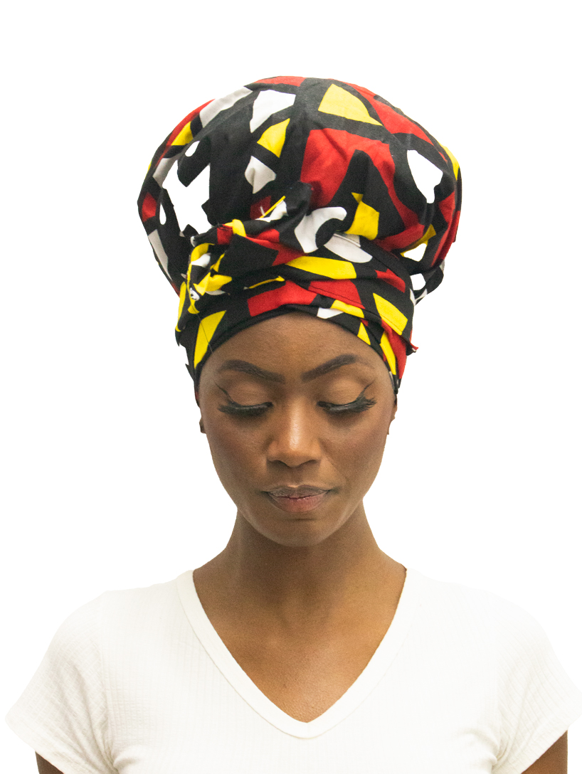 TURBANTE TOTALMENTE RESVESTIDO EM ESTAMPAS AFRICANOS ( TECIDO TRICOLINE )